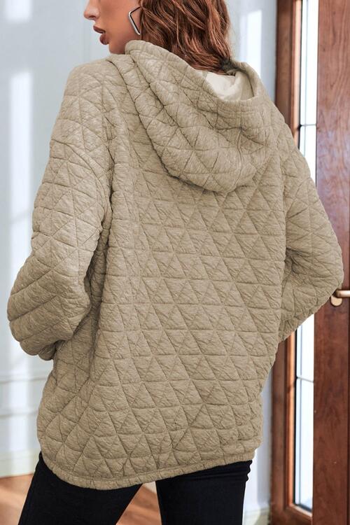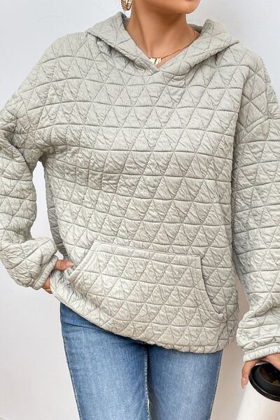 Quilted Long Sleeve Hoodie with Pocket